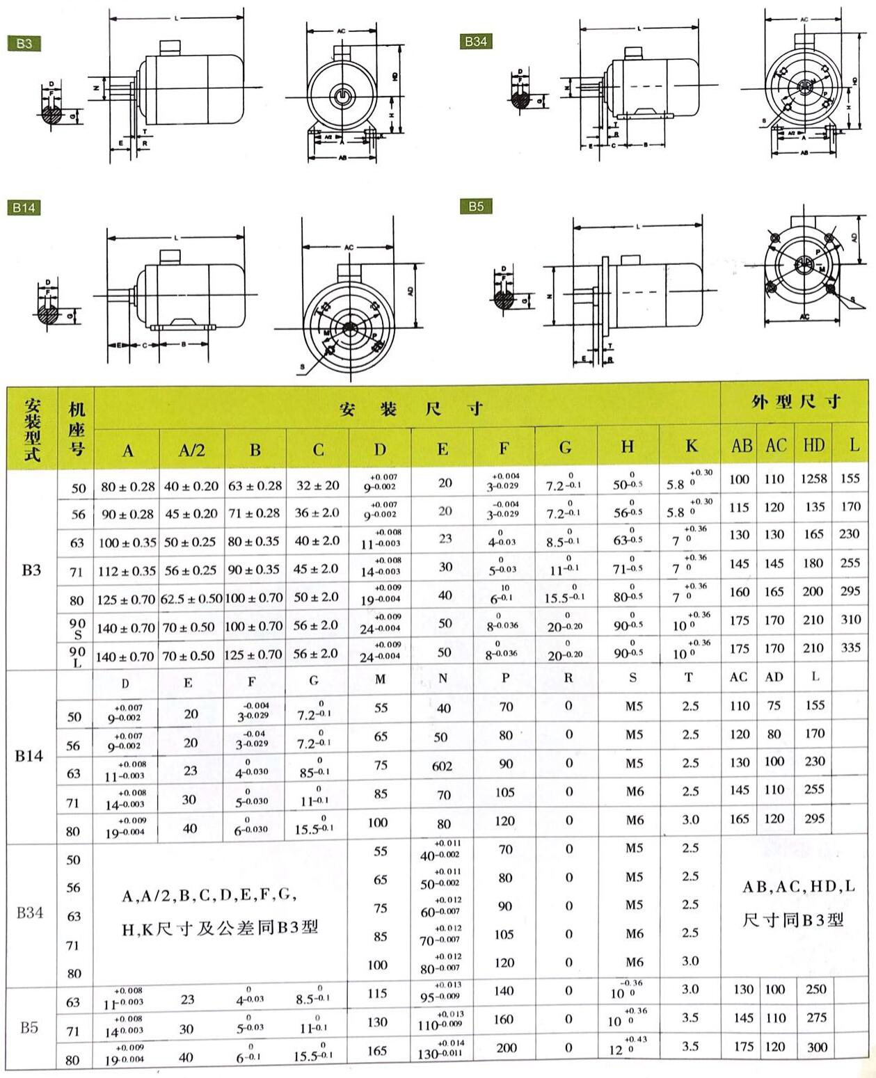 三、YS系列三相異步電機(jī)按安裝方式有下列四種基本形式。